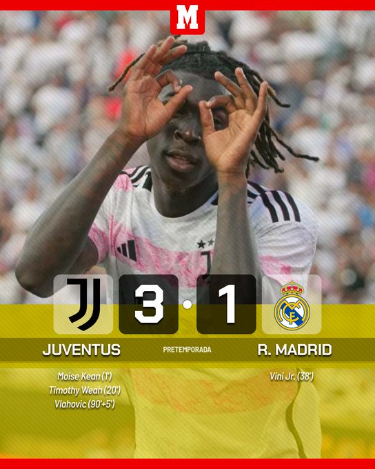 💥 El Real Madrid se despide de la gira norteamericana con otra derrota y ocho goles encajados en los cuatro partidos: ganó al Milan y al United... y perdió contra el Barça, y ahora contra la Juve marca.com/futbol/amistos…