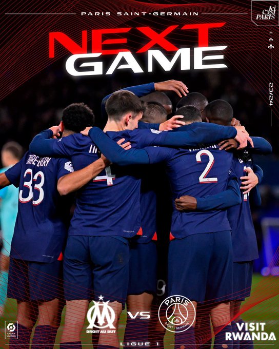 ⚽️ 𝐍𝐄𝐗𝐓 𝐆𝐀𝐌𝐄 🆚 Marseille 🗓️ 31/03 - 20h45 CEST 🏟️ Orange Vélodrome @visitrwanda_now | #LeClassique | #OMPSG