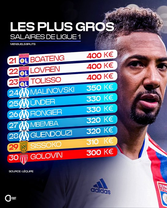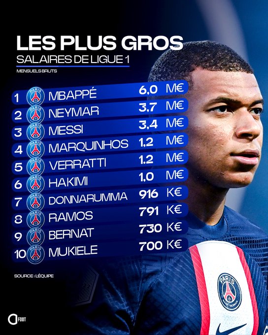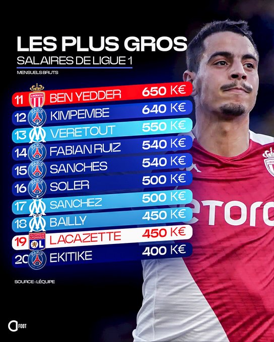 Les 3️⃣0️⃣ plus gros salaires mensuels bruts de Ligue 1. 💰 🗞 @lequipe