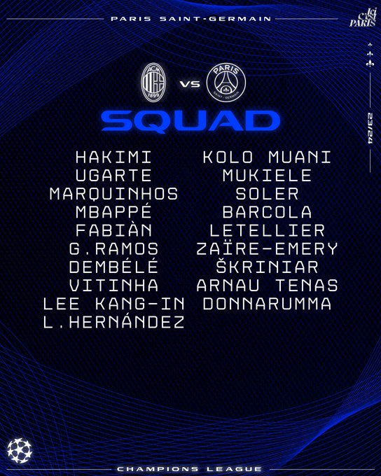 Le groupe parisien pour la 4ème journée de @ChampionsLeague ! 🔴🔵 #ACMPSG | #UCL