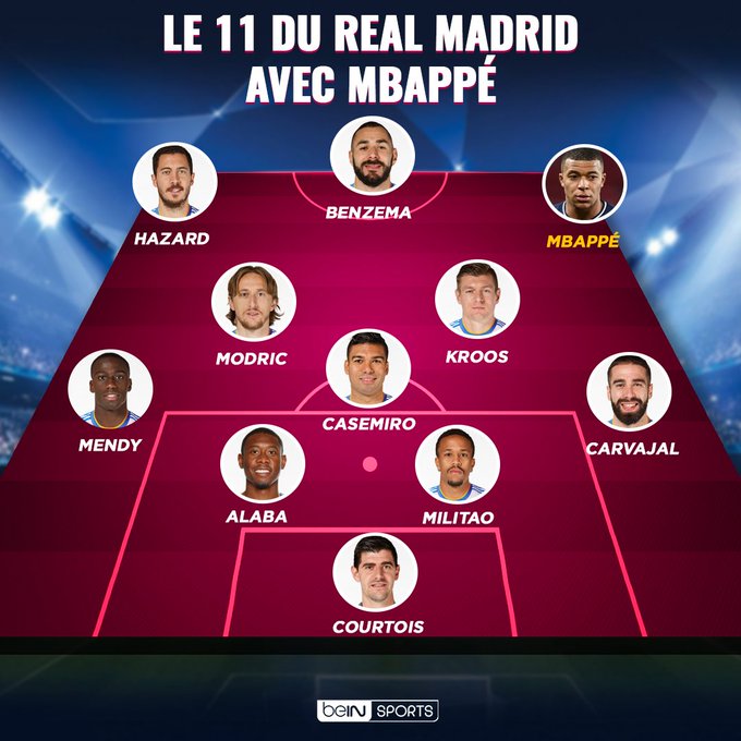 ⚽️ Voici ce que donnerait l'équipe type du Real Madrid avec Kylian Mbappé ! 🤔 Va-t-il rejoindre les Merengue cet été selon vous ?