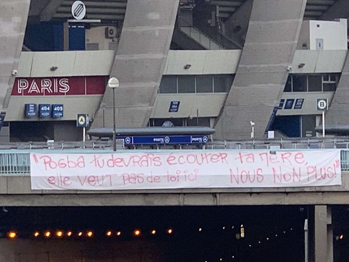 Certaines personnes ne veulent pas de Paul Pogba au #PSG et l’ont fait savoir devant le Parc des Princes et le Camp des Loges. CC.@ArthurPerrot