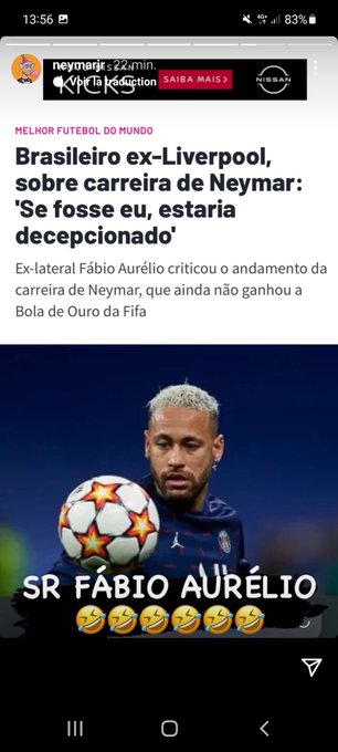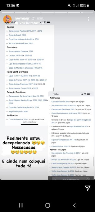 Fabio Aurelio sur la carrière de Neymar qui n'a pas gagne le ballon d'or "si c'était moi, je serai déçu" Neymar répond en story en postant son palmarès : "Je suis vraiment trop déçu 😥 mon dieuuuu 😥😥 Et encore j'ai pas tout mis."