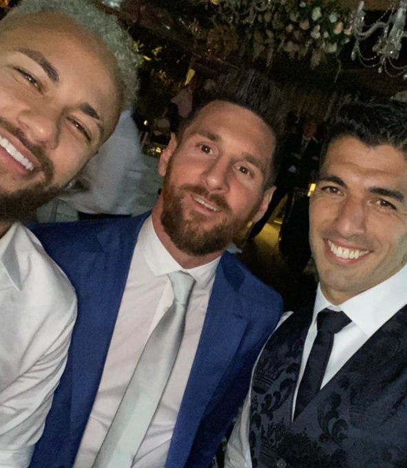 Luis Suárez renovó los votos con su esposa Sofía, y sus grandes socios no podían faltar a la fiesta. Lionel Messi, Neymar y El Pistolero volvieron a encontrarse. El tridente de tridentes. SIEMPRE LA MSN.
