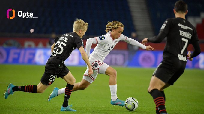 18 - Xavi Simons (18 years, 296 days) is the youngest Dutch starting debutant in the French Ligue 1 since Opta collects this data (1950-51). Printemps.