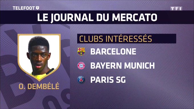 INFO TELEFOOT: Les plus grands clubs européens s'intéressent à @Dembouz ! Mais Dortmund réclame au moins 90 millions d'euros !