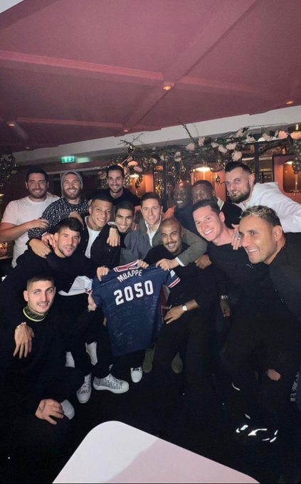 A l’occasion de son 23e anniversaire lundi, Kylian Mbappé a partagé un moment avec ses coéquipiers du Paris Saint-Germain. Ces derniers, pour plaisanter, lui ont offert un maillot simulant sa prolongation de contrat jusqu'en 2050. Ce qui a bien amusé l’attaquant français.