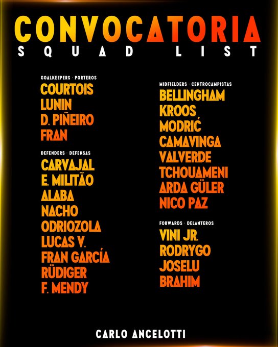 📝✅ ¡Nuestra primera convocatoria de la 2️⃣3️⃣/2️⃣4️⃣! #RealMadridOnTour