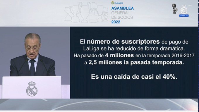 Dice FP (sic): "el RM tiene la responsabilidad de proteger al fútbol ante cientos de millones de aficionados" Luego confunde peras con manzanas comparando otras culturas (NFL) y deportes (Federer/Nadal). Su análisis de datos y mercado es de barra de bar. FP ¡no nos protejas!🙏