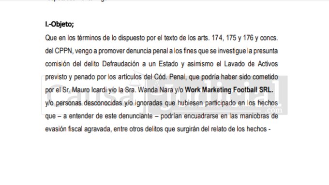 #Ahora Denunciaron penalmente a Mauro Icardi y Wanda Nara por el presunto delito de Defraudación al Estado y lavado de activos con la sociedad Work Marketing Football SRL. La empresa que abrió en 2015 y en 2017 habría facturado 2.47 millones de euros.