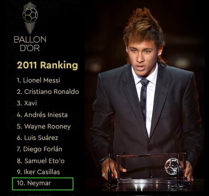 Streets won't forget when Neymar finished in Bdor top 10 even tho he never played in Europe.