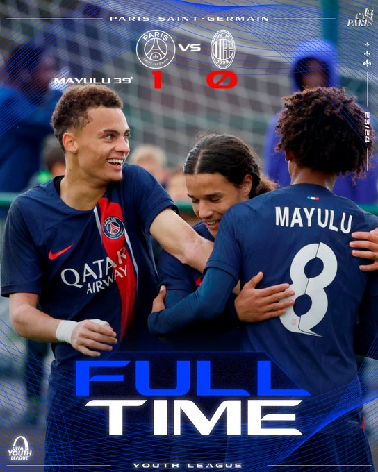 ✨ Nos 𝗧𝗶𝘁𝗶𝘀 s'imposent face à l'AC Milan en @UEFAYouthLeague ! ❤️💙 ⚽️ Mayulu #UYL