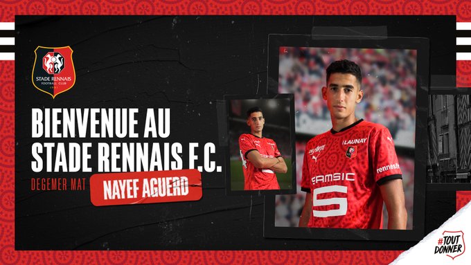 « Le Stade Rennais F.C. et le Dijon Football Côte-d'Or ont trouvé un accord pour le transfert définitif du défenseur central marocain Nayef Aguerd, qui s’est engagé jusqu’en 2024. Après avoir passé les tests médicaux avec succès, Nayef Aguerd vient renforcer la défense Rouge et Noir. Âgé de 24 ans, l’international marocain (2 sélections) arrive en provenance du DFCO avec qui il a disputé 24 rencontre de Ligue 1 en deux saisons. Avant de rejoindre Dijon en 2018, le gaucher évoluait au FUS de Rabat (Maroc). Avec le club marocain, Nayef Aguerd a notamment remporté la Coupe du Trône en 2014 et le championnat en 2016 », précise le Stade Rennais dans un communiqué.
