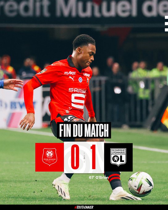 🏁 Rapidement réduit à 10, le Stade Rennais s'incline face à Lyon. #SRFCOL 0-1