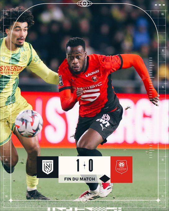 Réduit à dix à la 45e minute, le SRFC s'incline à Nantes. ≡ #FCNSRFC 1-0