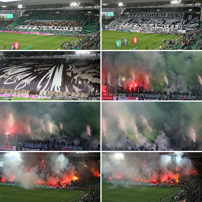 Le déluge de fumigènes et de feux d’artifice dans la tribune où les Green Angers fêtaient leur 30e anniversaire a probablement donné un beau spectacle, l’arbitre a moins apprécié d’évoluer dans le brouillard, le « show » débutant avant même le coup d’envoi, et ne s’arrêtant jamais. Il est vrai que selon Le Progrès, les Ultras stéphanois disposaient d’un arsenal assez incroyable, 800 fumigènes et autres engins pyrotechniques ayant été dénombrés dans le virage sud du Chaudron. La question est désormais de savoir comment cela a été rendu possible, et les regards se tournent vers les dirigeants de l’ASSE. Car ces derniers savaient que les Green Angels avaient prévu de fêter leur anniversaire à l’occasion de la réception de Monaco, et ils ont fait savoir que 500 stadiers et une compagnie de CRS étaient sur place, cette rencontre ayant été classée à hauts risques.