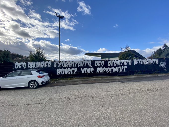 Une nouvelle banderole a été posée par les Magic Fans sur les grilles du centre d’entraînement de l’#ASSE, à L’Étrat.
