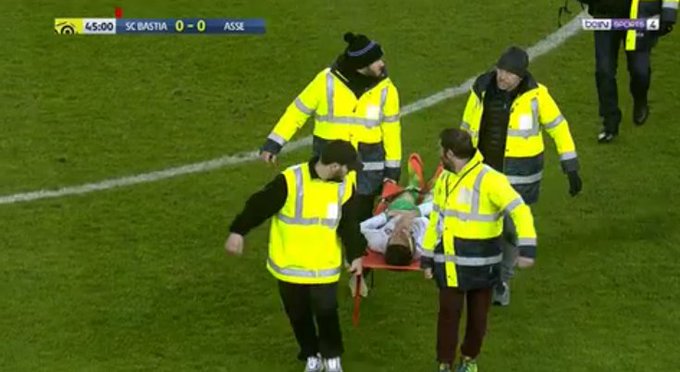 #SCBASSE 0-0 44e: Saint-Ruf est expulsé pour avoir blessé @Pajaxxance, toujours allongé sur la pelouse.