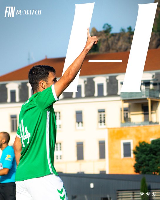 90e+10 : ⏹️ Les Verts débutent l’été par un nul (1-1) ! 21 joueurs ont pris part à ce premier rendez-vous qui a vu les hommes d’ODO égaliser par l’intermédiaire de Louis Mouton, malgré des jambes un peu lourdes ! Prochain adversaire : Villarreal (le 27, à Thonon) ! 🗓️