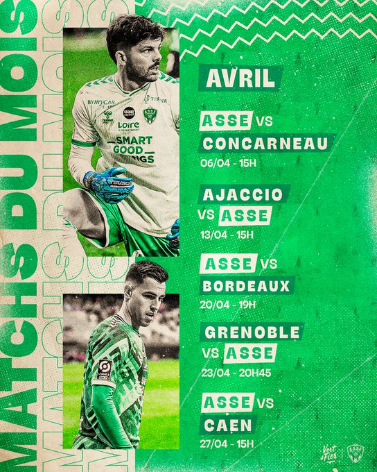 😤 Avril sera animé, chargé, disputé ! Concarneau, Ajaccio, Bordeaux, Grenoble, Caen... Cinq (gros) rendez-vous attendent les Verts ! 👊💚