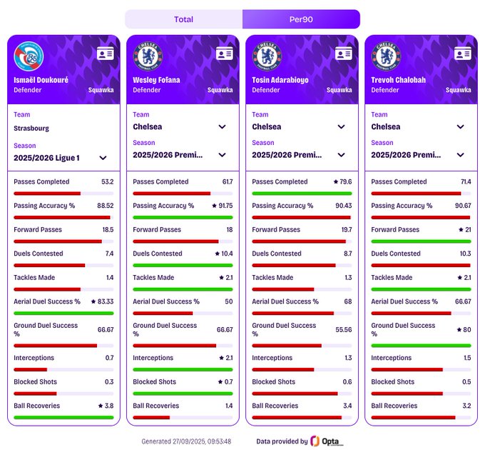 Ismaël Doukouré vs. current Chelsea centre-back options Doukoure has caught the eye of Chelsea higher ups despite not being bought initially for their model. (@Squawka)